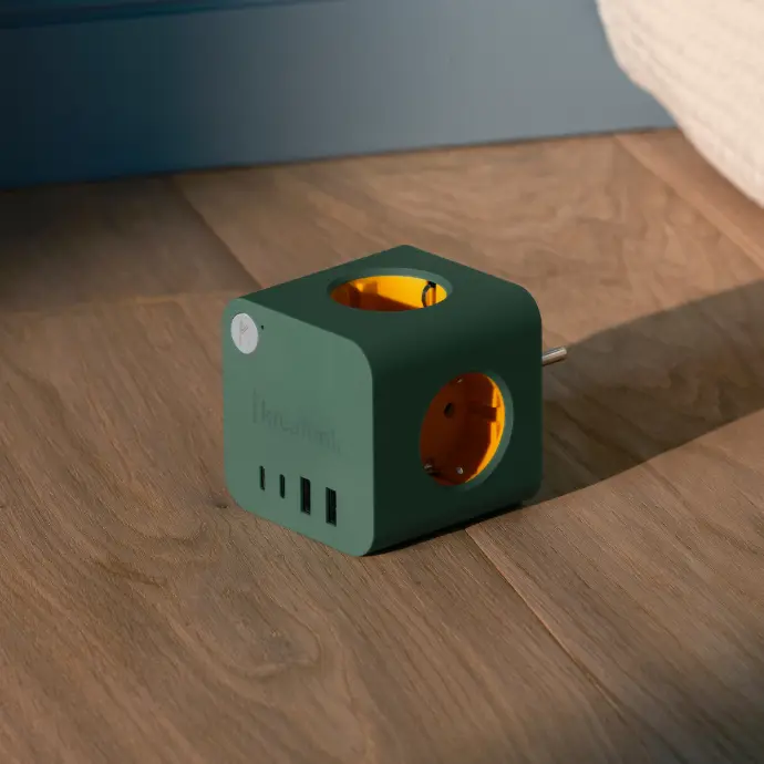 Multiprise compacte avec prises secteur et ports de charge USB, Ampie se branche directement sur secteur, éliminant ainsi le besoin de rallonges encombrantes.