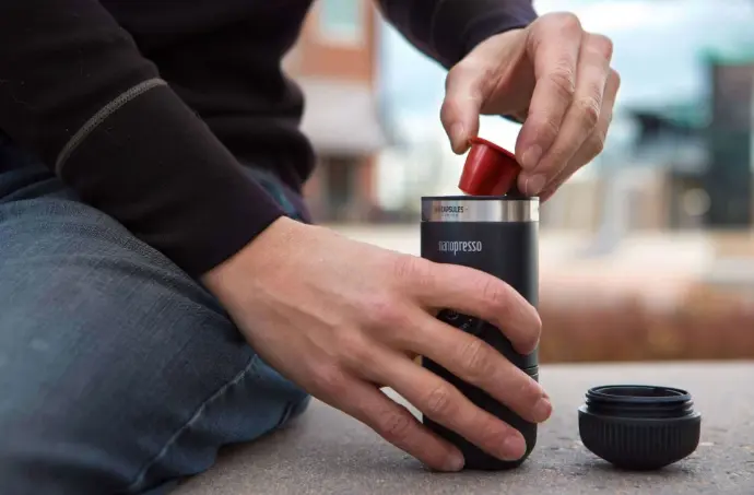 1- Dévissez le couvercle de la Nanopresso et placez le support de capsule NS à l’intérieur.